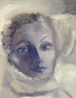 The Challenge was to paint a movie star using purples, I used ultramarine blue, alizeran crimson, and a very small amount of burnt seinna with Titanium white. Thanks Tamara ! Fun challenge: